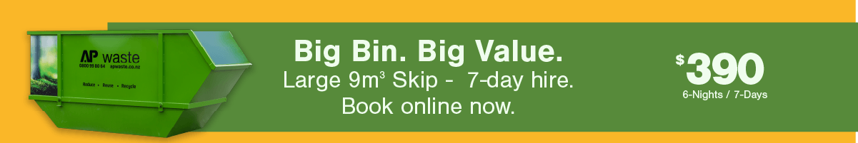 Select a skip based on the size required for your clean-up. You can put general and construction waste in any of our bins – but concrete, rocks, sand or soil need to go in a bin marked okay for concrete. See here for a list of waste we accept and do not accept.